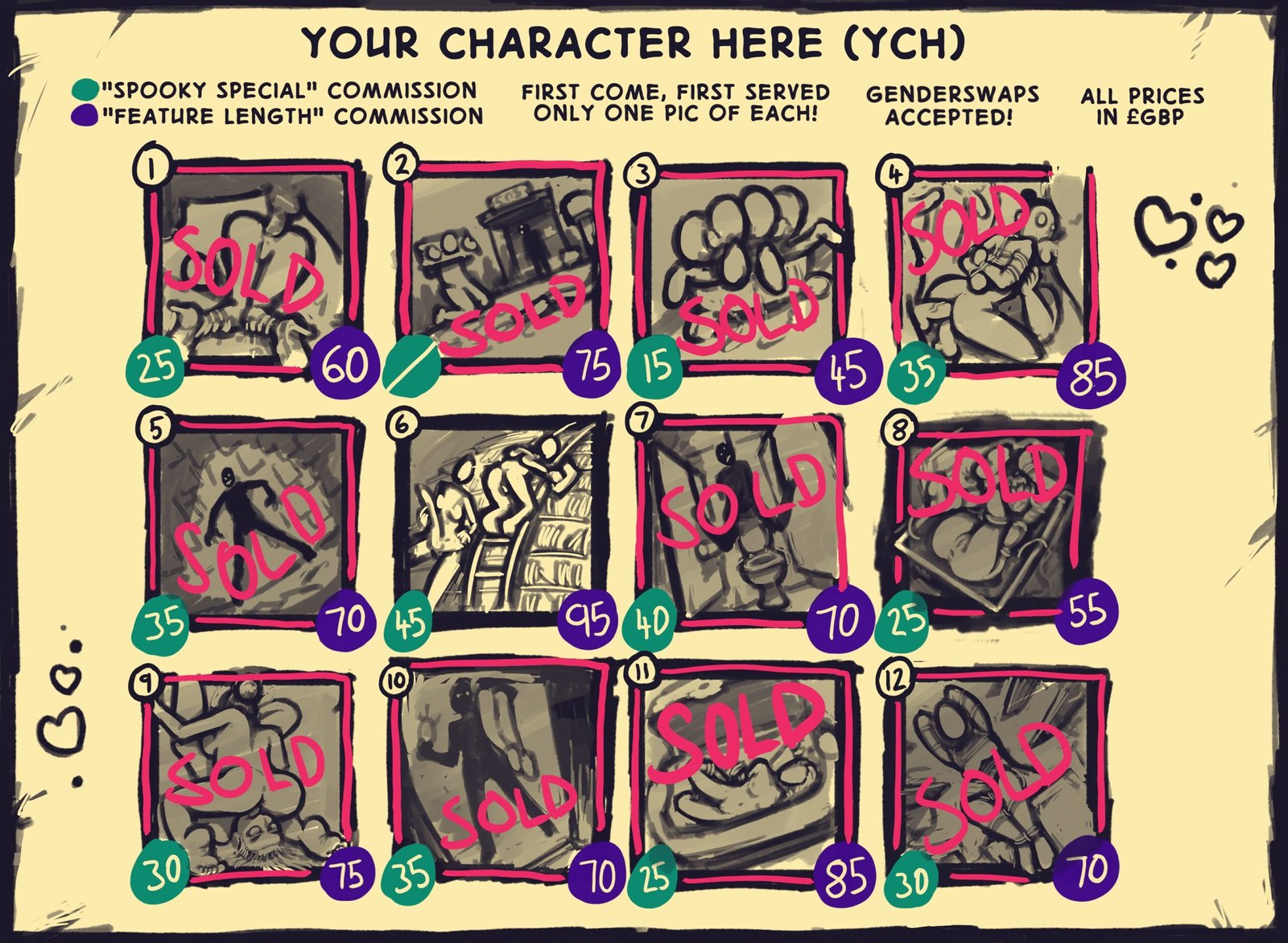 Want a commission but these ticket prices are out of range? Don’t worry, get in touch anyway, and we’ll figure out something that fits within your budget x